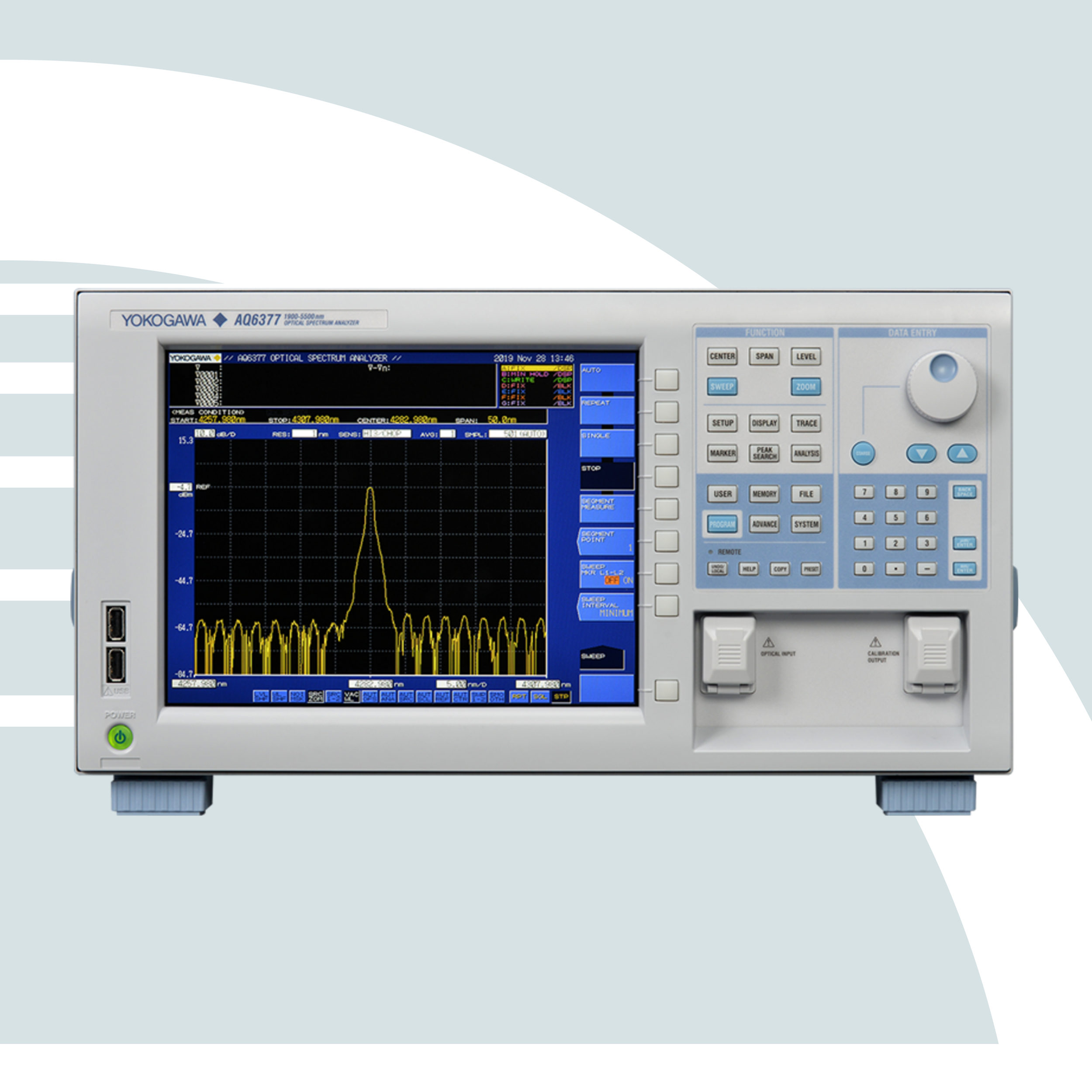 The AQ6370E OSA has a versatile wavelength range of 600 nm to 1700 nm, ideal for both telecom and general purpose applications. The unique free-space input design allows testing of both DWDM-class single-mode and VCSEL-sourced multimode fibers in a single model and the high-speed measurement mode, high close-in dynamic range mode, touch panel, and APP function greatly improve measurement efficiency.